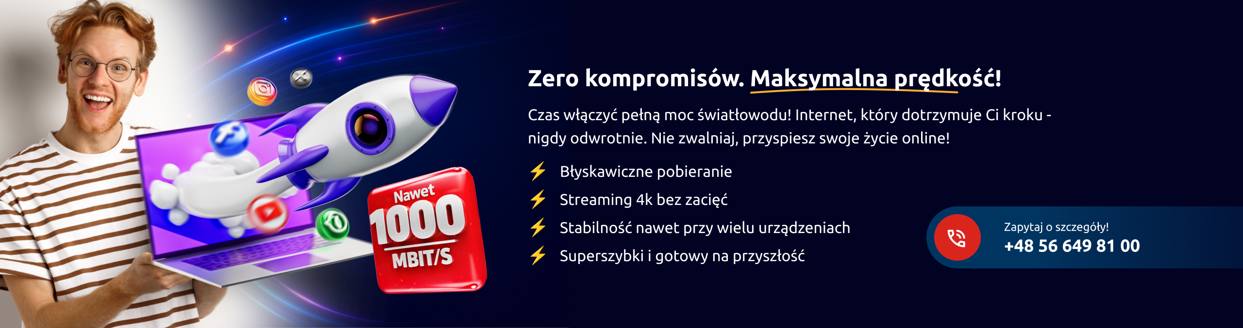 | Prędkość łącza 600 Mbit/s – pobieranie 150 Mbit/s – wysyłanie | Prędkość łącza 700 Mbit/s – pobieranie 150 Mbit/s – wysyłanie | Prędkość łącza 900 Mbit/s – pobieranie 200 Mbit/s – wysyłanie | Prędkość łącza 1000 Mbit/s – pobieranie 200 Mbit/s – wysyłanie |